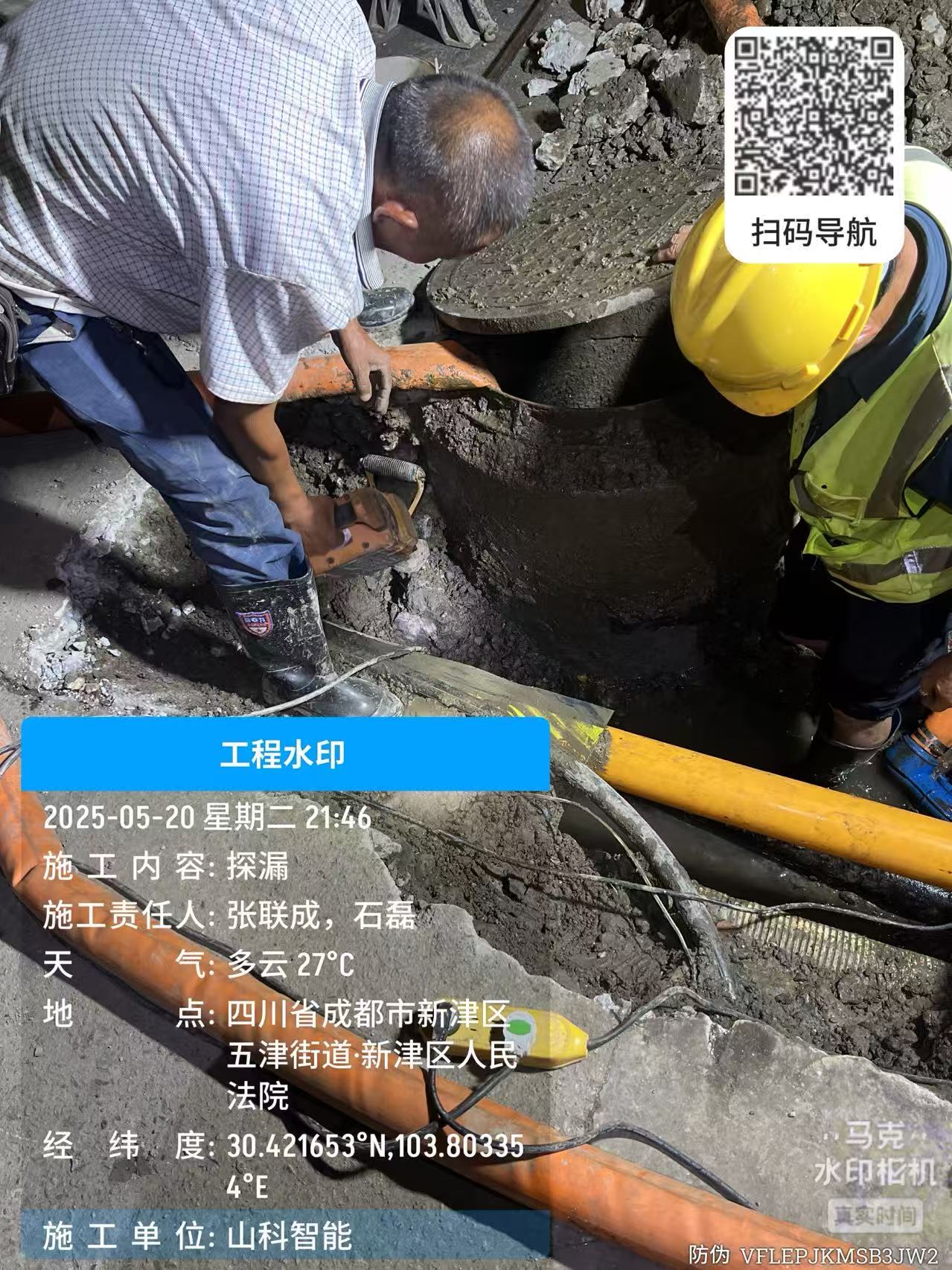 四川新津海天水司漏點(diǎn)周圍環(huán)境復(fù)雜,埋深較高,300口徑鑄鐵管道,埋深1.5米,周圍有煤氣管道和廢舊水管,極其影響判斷,依靠山科漏損漏損團(tuán)隊(duì)的經(jīng)驗(yàn)及先進(jìn)設(shè)備,成功找到漏點(diǎn),進(jìn)行開挖。