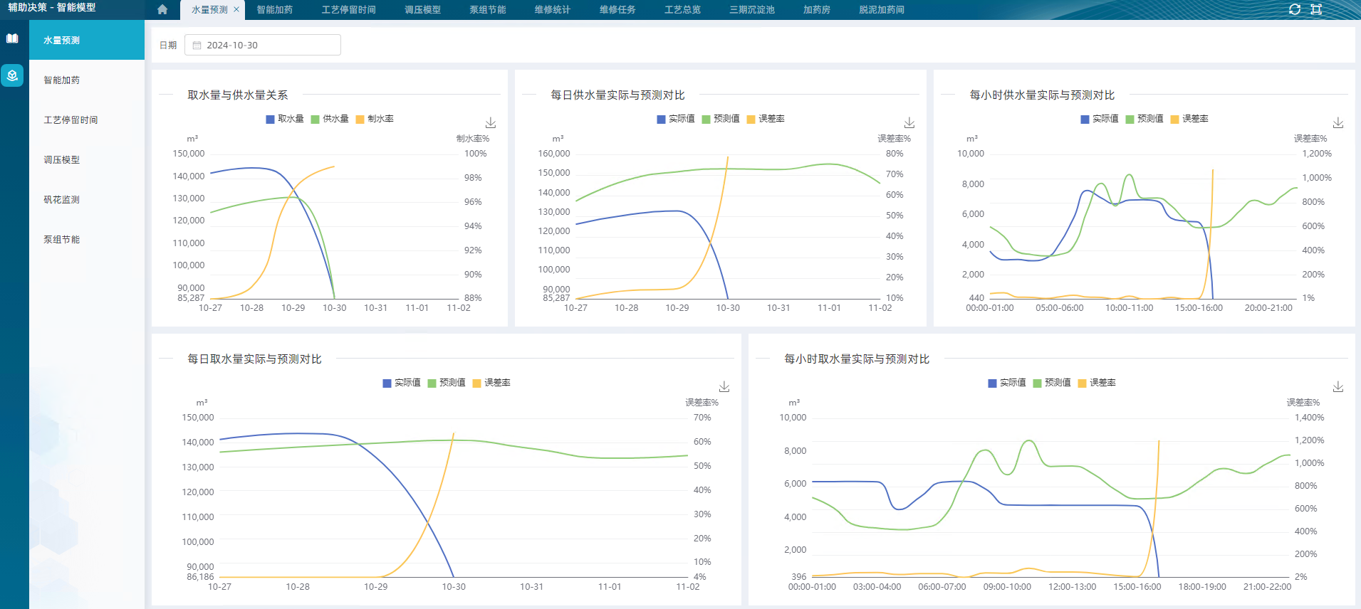 以多維度統(tǒng)計(jì)圖表的方式展現(xiàn)績效結(jié)果,識(shí)別凈水廠運(yùn)行管理薄弱環(huán)節(jié),為水廠運(yùn)行管理優(yōu)化提供豐富的數(shù)據(jù)展示企業(yè)門戶和決策支持,使得管理者的決策更加綜合、合理、可行,形成智能化、科學(xué)化決策,為全廠可視化、精細(xì)化、智慧化運(yùn)營提供數(shù)據(jù)依據(jù)和強(qiáng)有力的支撐。